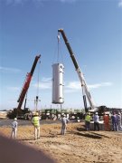 圖為吊裝現(xiàn)場。         11月2日,中國化學工程第六建設(shè)有限公司承建的海南華盛26萬噸/年非光氣法聚碳酸酯(PC)項目...
