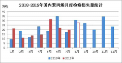 據(jù)統(tǒng)計,2019年7月份國內(nèi)聚丙烯檢修損失量在20.12萬噸,環(huán)比(2019年6月份22.01萬噸)減少1.89萬噸,降幅在8.58%;...