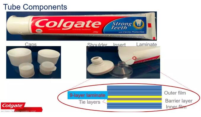 ????????根據《 APRDesign?塑料回收利用指南》,高露潔棕櫚將牙膏管中的部分材料進行了改進: