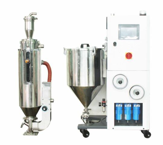 ????????該機(jī)型集合產(chǎn)生氮?dú)夂屠玫獨(dú)飧稍锛夹g(shù)及送料功能于一體,機(jī)器由控制主機(jī),儲料桶,干燥料桶組成。通過在干燥料桶中注入高濃度氮?dú)?,能夠防止注塑原料在干燥過程中因氧化而變黃。