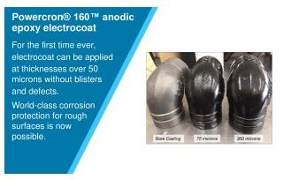 ????????POWERCRON?160陽極環(huán)氧電泳漆突破常規(guī)的電泳技術(shù)局限,改善了粗糙的零部件表面的腐蝕防護(hù)。這項(xiàng)電泳漆技術(shù)結(jié)合創(chuàng)新的聚合物設(shè)計、交聯(lián)劑和添加劑技術(shù),讓用戶可在原有不可能的厚度上使用高品質(zhì)薄膜。