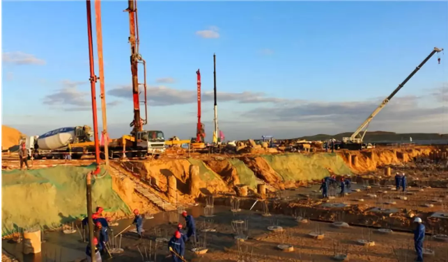 ????????10月4日上午,1、2號(hào)裂解爐基礎(chǔ)基槽驗(yàn)收一次通過(guò),于下午18時(shí)開(kāi)始澆筑墊層,晚上22時(shí)澆筑完成。本次單臺(tái)裂解爐基礎(chǔ)墊層混凝土澆筑量為49立方米,該墊層的澆筑完成為下一步裂解爐基礎(chǔ)鋼筋綁扎、支模等工作打下了堅(jiān)實(shí)的基礎(chǔ)。