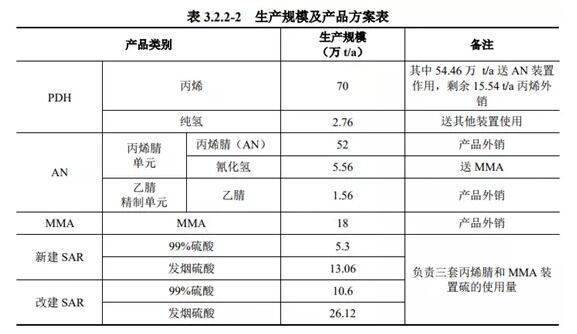 ????????據(jù)介紹,該項目主要建設(shè)內(nèi)容為:擴建項目新建70萬t/a丙烷脫氫裝置、兩套26萬t/a丙烯腈裝置、兩套9萬t/a MMA裝置及一套21萬t/a SAR裝置,同時改建現(xiàn)有項目中一套23萬t/a SAR裝置,擴建項目所有生產(chǎn)裝置均在斯爾邦預留用地上。