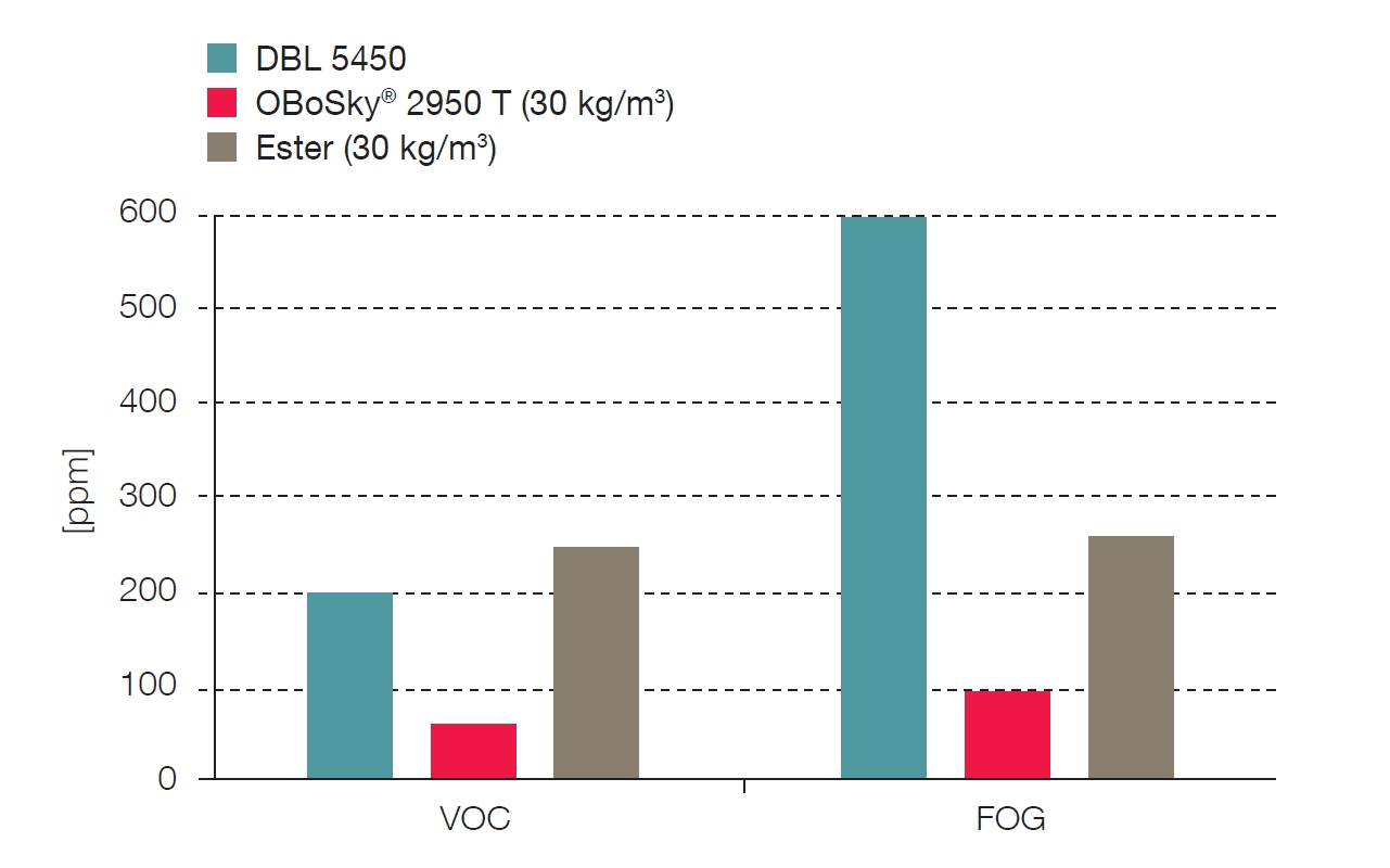 ????????據(jù)稱,頂篷級泡沫具有非常均勻的結(jié)構(gòu)和細孔,提供易于在火焰和粘合過程中層壓的表面,同時粘附在表面輕質(zhì)的裝飾紡織品上。據(jù)說該材料的醚基預(yù)聚物技術(shù)確保了非常好的耐水解性和長期的高機械性能。并且,與僅基于酯的泡沫相比,這種泡沫的VOC和FOG的水平顯著降低。根據(jù)VDA 278和VDA 270標準的VOC和FOG測試,OBoSky的測量結(jié)果明顯低于DBL 5450規(guī)定的限值,DBL 5450是戴姆勒基于聚氨酯的柔性泡沫的供應(yīng)規(guī)定。