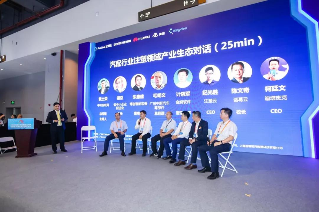 ????????發(fā)布會邀請了廣州中和總經理黃土榮、省中小企業(yè)促進會會長謝泓、博創(chuàng)董事長朱康建、廣州中新汽車零部件總經理毛明文、金蝶軟件智造專家計曉軍、注塑云CEO紀光勝、諸葛云校長陳文奇、俺搜CEO柯廷文八位嘉賓進行汽配行業(yè)注塑領域產業(yè)生態(tài)對話,共同探討如何重塑傳統(tǒng)產業(yè),讓新一代年輕人愛上注塑產業(yè)。