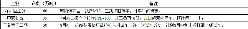 ????????8月份國內(nèi)聚丙烯裝置檢修匯總