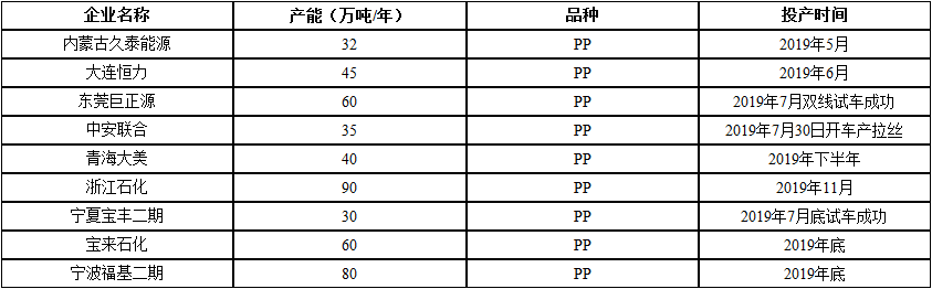 ????????1、2019年國內PP裝置投產(chǎn)情況