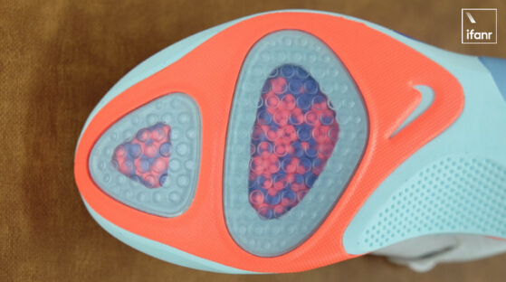 ????????在第一次穿著的時(shí)候,可以很明顯地感覺(jué)到,腳后跟和前腳掌兩處的緩震小球堆積在一起,高出鞋底平面頂住了腳底,這個(gè)時(shí)候就需要唱跳 rap 和籃球活動(dòng)一下,把聚集的小球門踩均勻,以獲得和腳型適配的獨(dú)一無(wú)二的緩震小球分布。