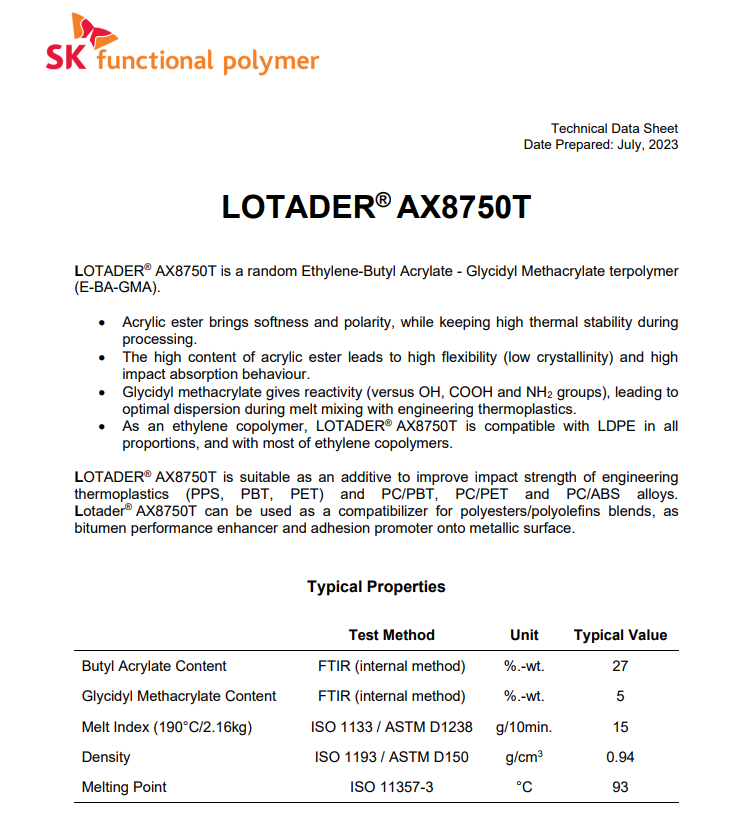 - EMA 法國阿科瑪 AX8750 塑料改性劑 粘結樹脂 PC加纖料改性兼容劑 物性表, EMA 法國阿科瑪 AX8750 塑料改性劑 粘結樹脂 PC加纖料改性兼容劑 產(chǎn)品參數(shù),EMA 法國阿科瑪 AX8750 塑料改性劑 粘結樹脂 PC加纖料改性兼容劑 性能表,EMA 法國阿科瑪 AX8750 塑料改性劑 粘結樹脂 PC加纖料改性兼容劑 出廠報告, MSDS,, 物質(zhì)安全資料表, UL黃卡,{ SGS報告, RoHS, 食品級認證, NSF飲用水標準, 產(chǎn)品資料, 產(chǎn)品性能, 出廠報告, 原廠原包, 代理商, 熱變形溫度, 熔指數(shù), 流動系數(shù), 抗沖擊性能、沖擊強度, 低溫韌性、低溫抗沖擊性能, 熔體流動系數(shù)、熔體流動速率, 加工工藝、加工參數(shù)、加工溫度, 歐盟RoHS 德國FDA 美國FDA 日本FDA