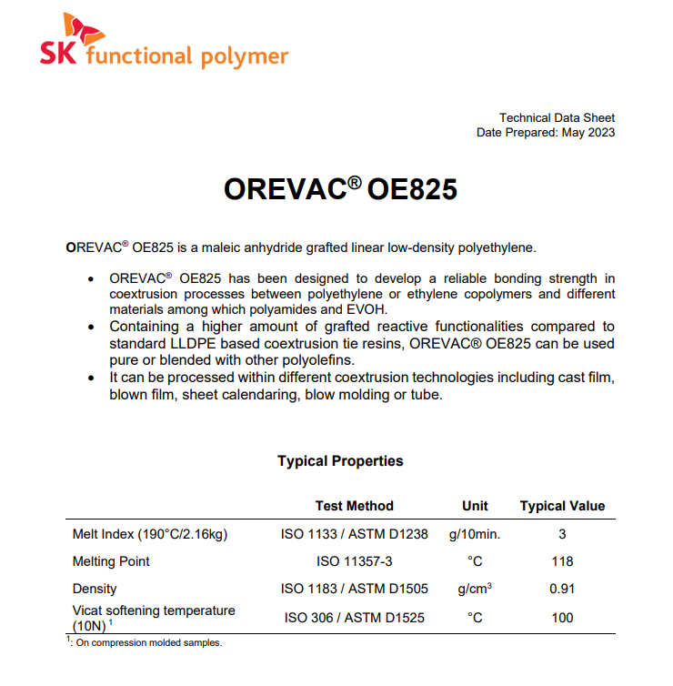 • 法國(guó)阿科瑪 PEPA三層共擠 Orevac OE825 馬來(lái)酸酐改性粘合劑樹(shù)脂 物性表, 法國(guó)阿科瑪 PEPA三層共擠 Orevac OE825 馬來(lái)酸酐改性粘合劑樹(shù)脂 產(chǎn)品參數(shù),法國(guó)阿科瑪 PEPA三層共擠 Orevac OE825 馬來(lái)酸酐改性粘合劑樹(shù)脂 性能表,法國(guó)阿科瑪 PEPA三層共擠 Orevac OE825 馬來(lái)酸酐改性粘合劑樹(shù)脂 出廠報(bào)告, MSDS,, 物質(zhì)安全資料表, UL黃卡,{ SGS報(bào)告, RoHS, 食品級(jí)認(rèn)證, NSF飲用水標(biāo)準(zhǔn), 產(chǎn)品資料, 產(chǎn)品性能, 出廠報(bào)告, 原廠原包, 代理商, 熱變形溫度, 熔指數(shù), 流動(dòng)系數(shù), 抗沖擊性能、沖擊強(qiáng)度, 低溫韌性、低溫抗沖擊性能, 熔體流動(dòng)系數(shù)、熔體流動(dòng)速率, 加工工藝、加工參數(shù)、加工溫度, 歐盟RoHS 德國(guó)FDA 美國(guó)FDA 日本FDA