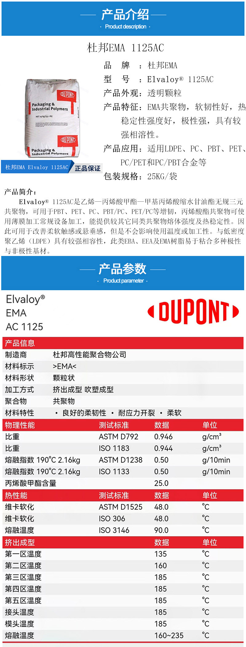 • EMA 杜邦 1125 相溶劑 PC/PET PBT增韌劑 LDPE薄膜 Elvaloy 物性表, EMA 杜邦 1125 相溶劑 PC/PET PBT增韌劑 LDPE薄膜 Elvaloy 產(chǎn)品參數(shù),EMA 杜邦 1125 相溶劑 PC/PET PBT增韌劑 LDPE薄膜 Elvaloy 性能表,EMA 杜邦 1125 相溶劑 PC/PET PBT增韌劑 LDPE薄膜 Elvaloy 出廠報(bào)告, MSDS,, 物質(zhì)安全資料表, UL黃卡,{ SGS報(bào)告, RoHS, 食品級(jí)認(rèn)證, NSF飲用水標(biāo)準(zhǔn), 產(chǎn)品資料, 產(chǎn)品性能, 出廠報(bào)告, 原廠原包, 代理商, 熱變形溫度, 熔指數(shù), 流動(dòng)系數(shù), 抗沖擊性能、沖擊強(qiáng)度, 低溫韌性、低溫抗沖擊性能, 熔體流動(dòng)系數(shù)、熔體流動(dòng)速率, 加工工藝、加工參數(shù)、加工溫度, 歐盟RoHS 德國(guó)FDA 美國(guó)FDA 日本FDA