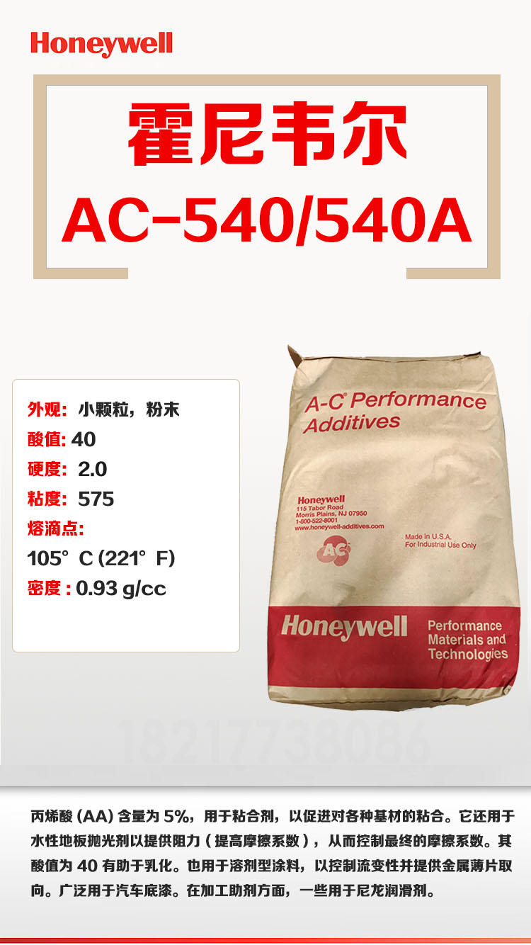 霍尼韋爾honeywell A-C540A適合用于尼龍改性材料 乙烯-丙烯酸共聚物