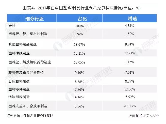 增速最高的是塑料薄膜制造,同比增長12.71%;其次是塑料零件制造,同比增長12.06%。塑料人造革、合成革制造和泡沫塑料制造利潤總額減少,同比分別下降18.13%和5.92%。