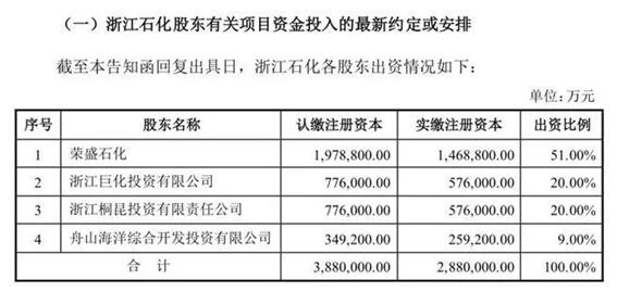 對(duì)此,證監(jiān)會(huì)要求榮盛石化說明浙江石化未來的股權(quán)變化是否對(duì)項(xiàng)目實(shí)施構(gòu)成重大影響。