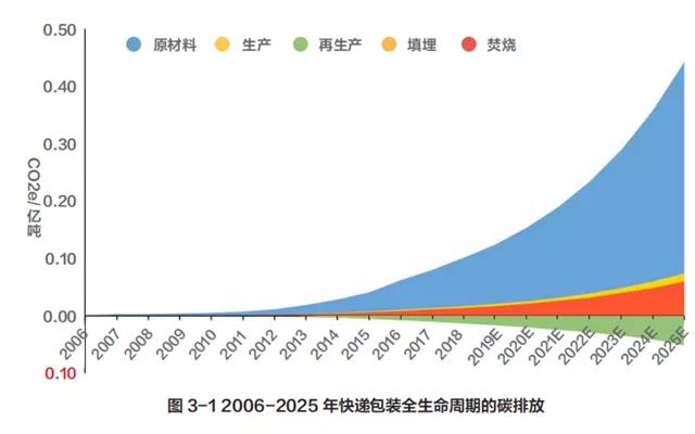 引起快遞包裹量增長的情況相契合。2010 年快遞包裝產(chǎn)生 61.15 萬噸碳排放,2018 年激增到1303.10 萬噸,須種植 7.1 億顆樹木才能中和掉。若不采取有效的綠色化政策,2025 年我國快遞包裝在全生命周期的碳排放量將達到 5706.10萬噸??梢姡鎸ぴ龅目爝f包裝碳排放,電商平臺和快遞公司制定和施行快遞包裝綠色化管理十分緊迫。