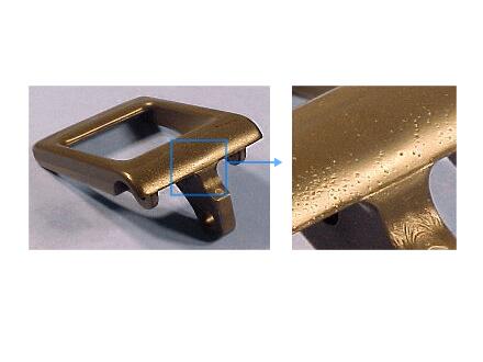 樹脂或者模具溫度比較低時,注塑成型制品表面的固化速度就會加快,有時候進(jìn)行及時施加保壓,從而出現(xiàn)麻點外觀。
