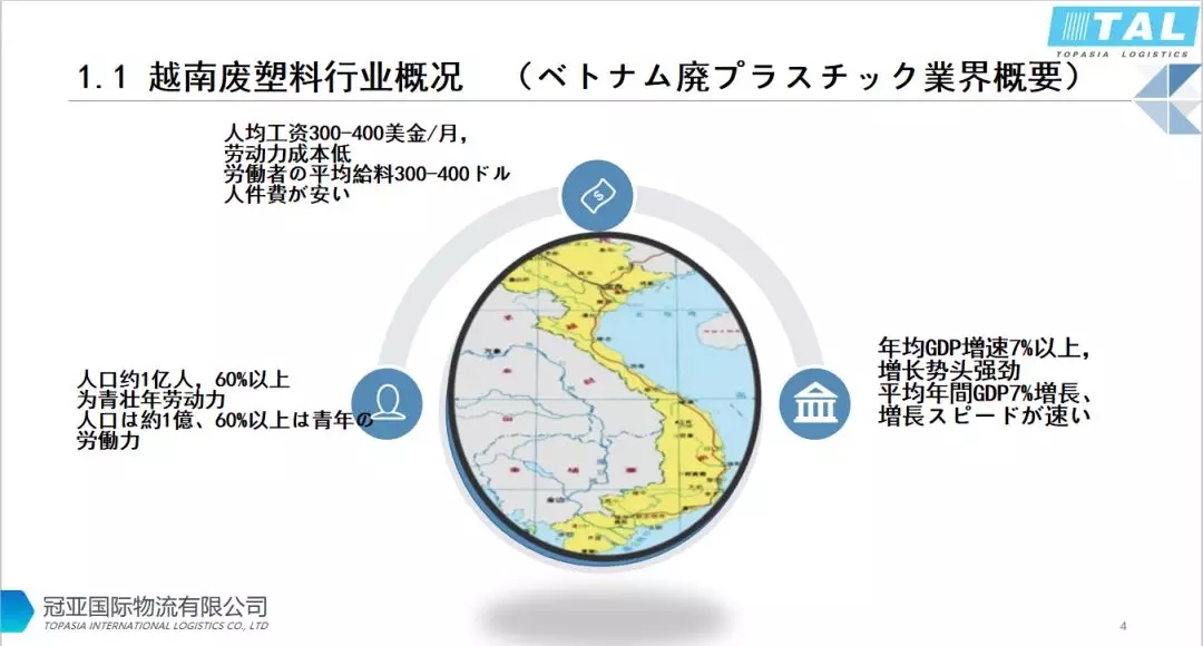 ????????冠亞國際物流執(zhí)行總裁/日本冠亞國際物流株式會社代表取締役社長何國慶,2019年12月6日在日本東京舉辦的“AsiaReplas2019第1屆亞洲塑料資源循環(huán)促進(jìn)大會暨亞洲塑料資源循環(huán)促進(jìn)協(xié)會成立大會”,發(fā)表主題為“東南亞國家塑料資源回收利用的現(xiàn)狀與未來趨勢”的演講。