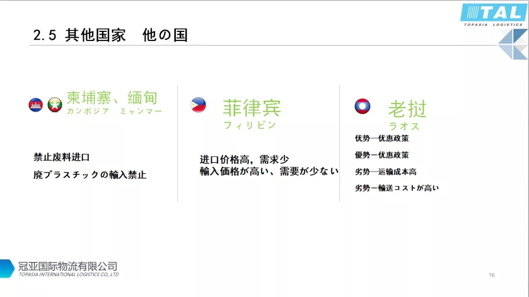 ????????菲律賓碼頭擁擠,國內(nèi)安全環(huán)境堪憂,再生資源的利用規(guī)模非常小。進(jìn)口成本比泰國還高約3500美金/柜,廢塑料企業(yè)很難生存。