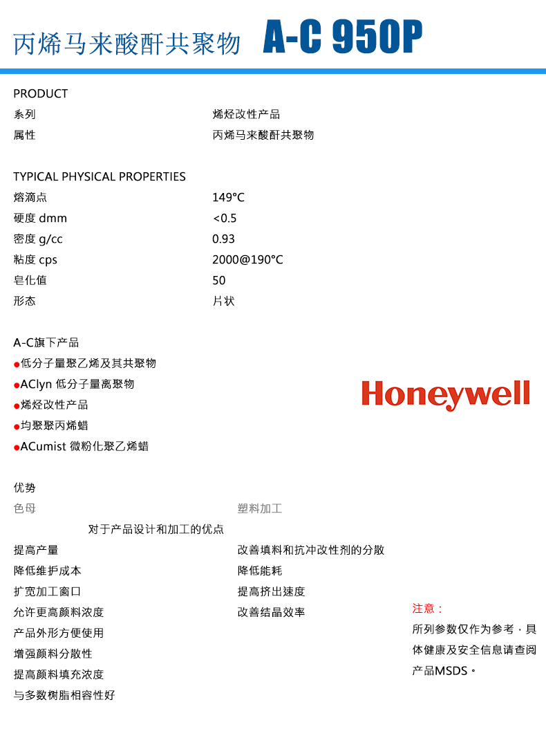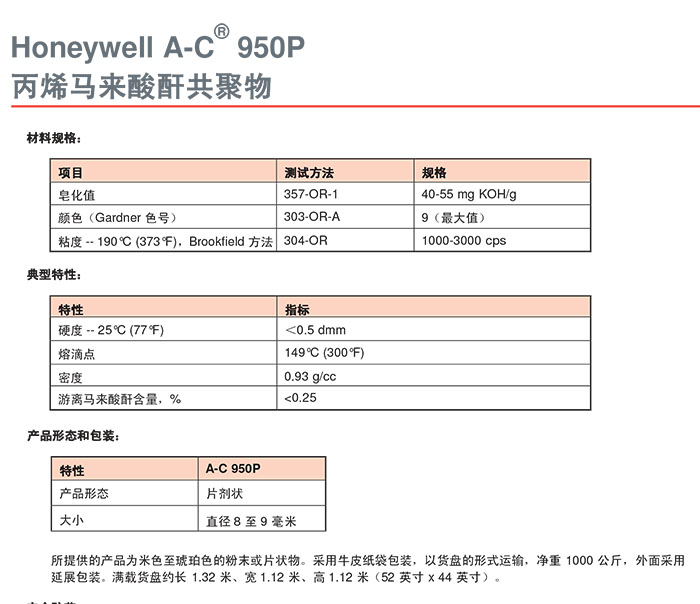霍尼韋爾  honeywell 丙烯馬來(lái)酸酐共聚物 A-C 950P 適用熱熔膠電纜塑料改性
