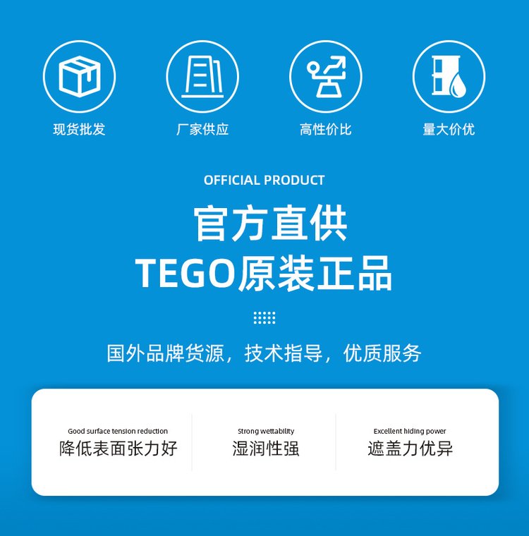 迪高tego245潤濕劑在水性及溶劑型配方中有良好的效果,特別是在塑料底材上。相容性非常好。