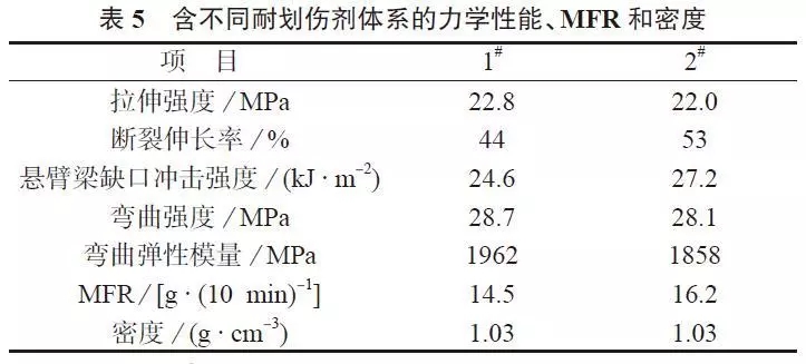 ????????兩種耐劃傷劑在常溫下都使PP具有較好的耐劃傷性能,但有機(jī)硅類耐劃傷劑在PP材料熱老化后仍使其保持優(yōu)良的耐劃傷性能,同時在氣味、VOC、霧度具有較大的優(yōu)勢,在韌性和加工性方面也具有一定的優(yōu)勢。