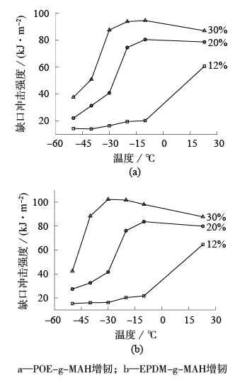 ????????當(dāng)POE-g-MAH和EPDM-g-MAH的質(zhì)量分?jǐn)?shù)為20%時(shí),