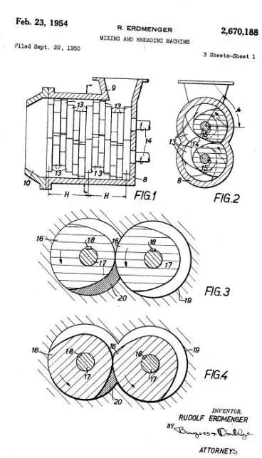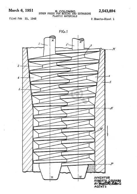 Colombo Roberto在美國申請的一系列專利中的一篇——screw press for mixing and extruding plastic materials(1951)